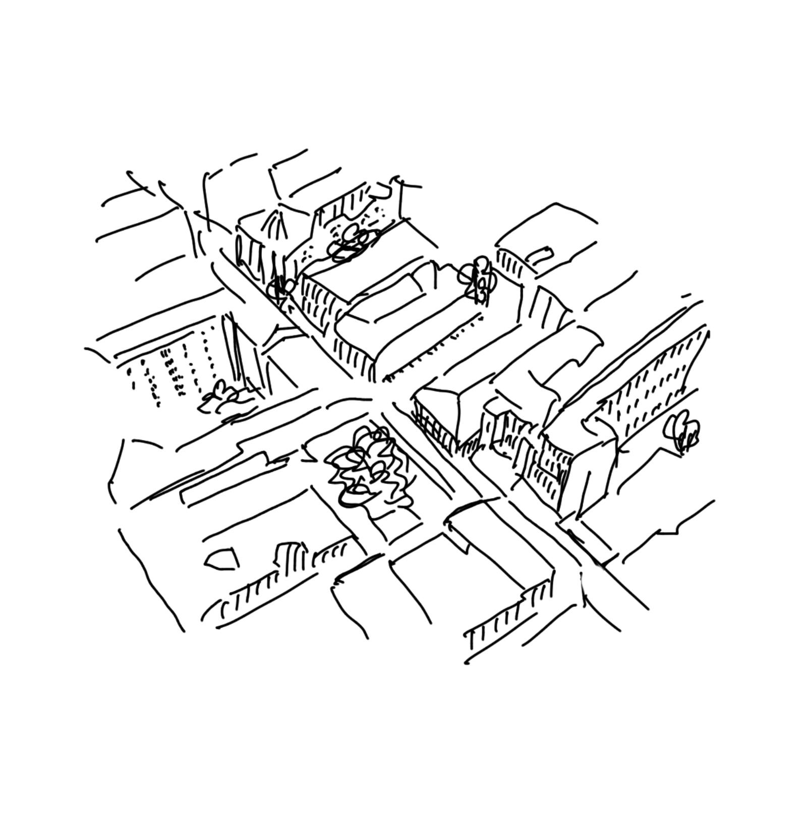 Az új épület pinceszintjén teljesen, földszintjén pedig részben parkoló fejlesztése tervezett.